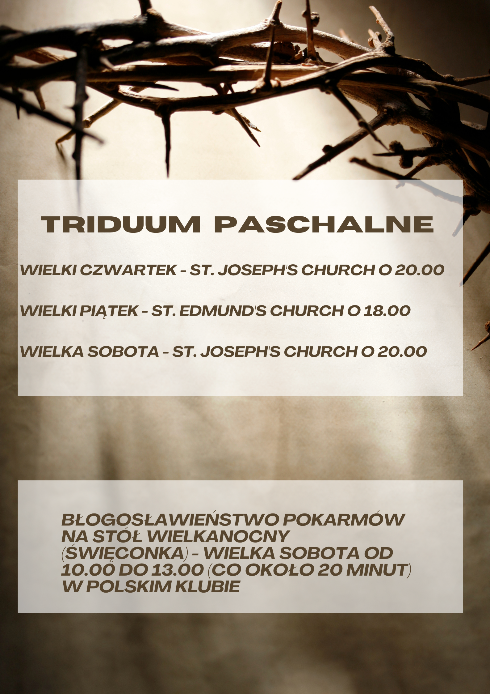 – środa, czwartek i piątek godz. 19.00 [St. Joseph Church,48 Bugle St, Southampton SO14 2AH]